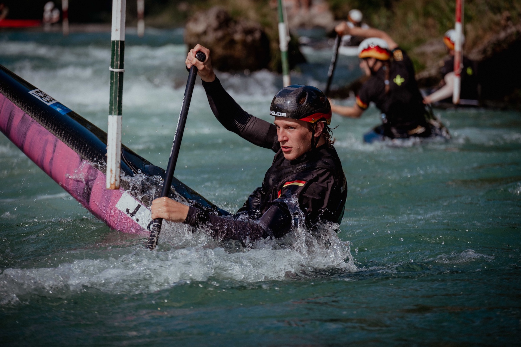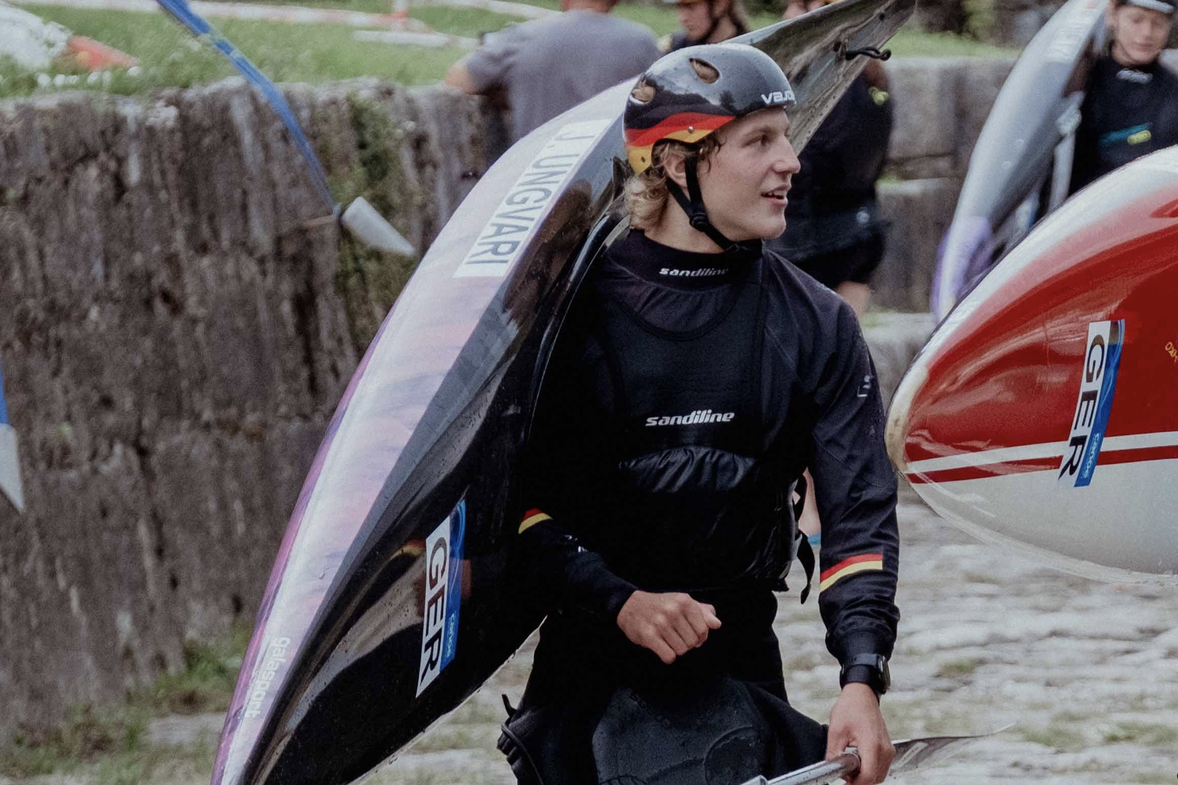 Dabei arbeitet Jakob Ungvari gerne genau und feilt an seiner Technik. Im Training ist ihm der Vergleich und Austausch mit anderen am wichtigsten. „Kilian (Käding) und ich sind ein gutes Team: Wir sind beste Freunde, wir pushen uns im Training, besprechen Technikfragen und ziehen es zusammen durch. Auch jetzt im Winter, da ist das Training nicht so meins. Wir sind zwar jeden Tag auf dem Wasser, aber machen viel Grundlagen, weniger Technik, Laktat-Intervalltraining für die Ausdauer und sowas.“ Ein guter Freund war es übrigens auch, der ihn zum Kanuslalom animiert hat: In der Grundschule haben sie zusammen ein Probetraining im Kanupark Markkleeberg absolviert. Der Rest ist eine vielversprechende Kanuslalomkarriere, die er im Jahr 2025 unter anderem mit einem 7. Platz im Einzel und einem 3. Platz mit der Mannschaft bei der U18-WM bestätigte. Bei der Junioren- und U23-Europameisterschaft holte er mit dem Team Bronze. „EM und WM sind bei uns anspruchsvoll und vom Leistungsniveau ähnlich, da die meisten sehr guten Athleten aus Europa kommen. Sich international mit den besten seiner Klasse zu messen – da will ich hin“, bestätigt Jakob.