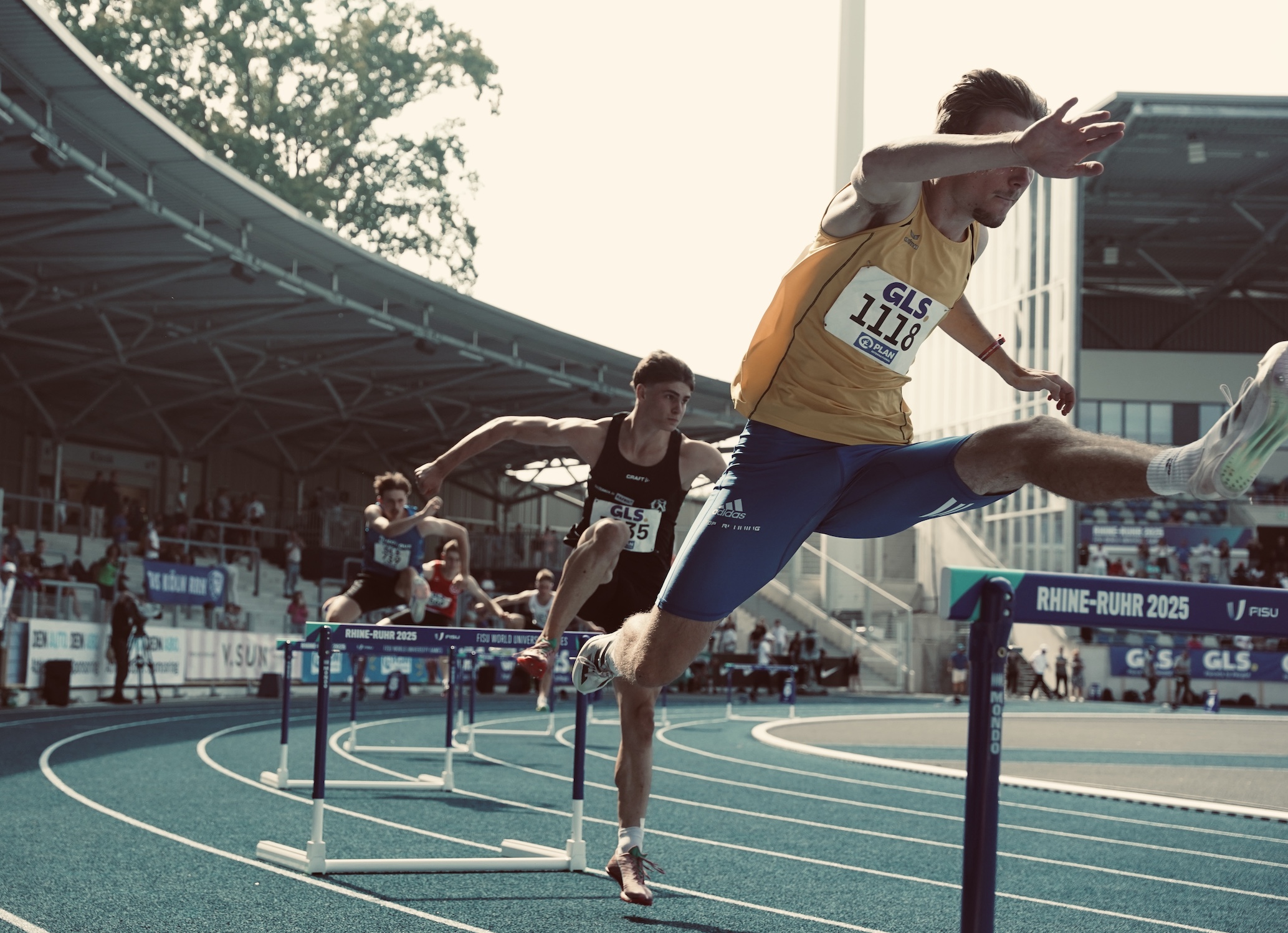 Der Mittelfußbruch prägt aktuell noch seinen Trainingsalltag: Viel Regeneration, Grundlagenarbeit, Techniktraining und Stabilisation stehen im Fokus. Ziel ist es, verletzungsfrei zu bleiben und wieder angreifen zu können. Dabei soll auch ein Trainingslager auf Teneriffa helfen. Die nächste Hallensaison will er mit lediglich zwei Wettkämpfen klein halten, um sich voll auf die Deutschen Meisterschaften 2026 zu konzentrieren. Besonders wichtig ist ihm die technische Weiterentwicklung. Luis möchte den typischen 13er-Schritt etablieren, um konstant mit seinem stärkeren linken Bein über die Hürden zu kommen. Derzeit läuft er im 14er-Rhythmus und muss dadurch das Absprungbein variieren. „Es ist ein langer Weg an die Spitze, vor allem jetzt beim Wechsel in die U20. Genau daran will ich arbeiten, denn ein Finale bei den Männern ist perspektivisch das Ziel.“ Und auch ein Traum rückt stetig näher: die Olympischen Spiele in Los Angeles 2028 beziehungsweise Brisbane 2032. Luis bleibt jedoch realistisch: Er möchte Schritt für Schritt gehen, jede Saison sein gestecktes Ziel erfüllen – und das heißt aktuell U23-Europameisterschaft.