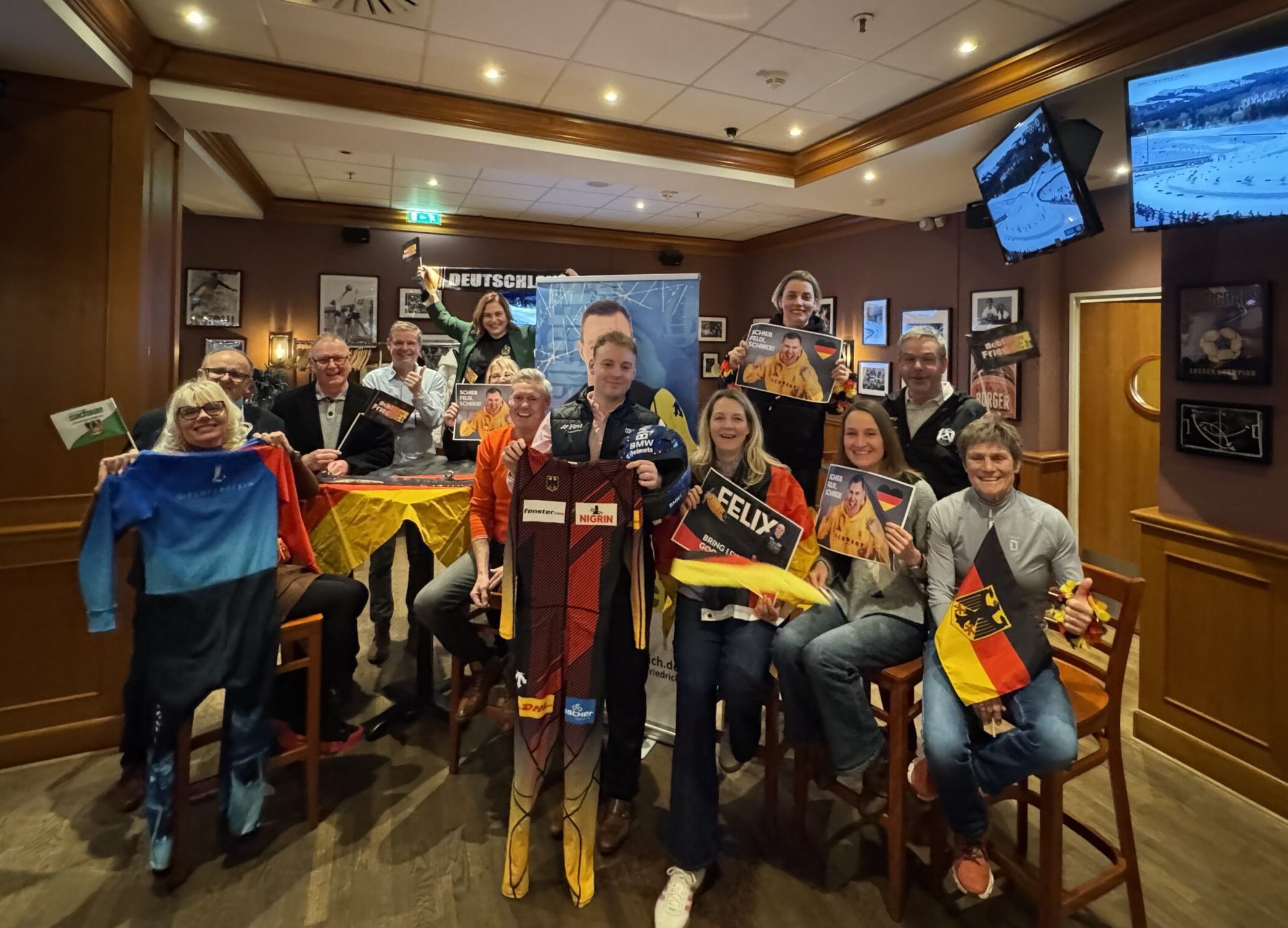 Rund 40 Fans des sympathischen Anschiebers waren Samstag und Sonntag in der Champions Bar zusammengekommen, um ihn über vier Durchgänge hinweg anzufeuern. Schnell war für die Wegbegleiter von der Sportstadt Leipzig, vom SC DHfK Leipzig e. V., Olympiastützpunkt Sachsen/Standort Leipzig und vom Rennrodel-, Bob- & Skeletonverband für Sachsen e.V. klar: An Landsmann „Hansi“ Lochner kommt das Team um „Franz“ diesmal nicht vorbei. Dennoch feierten sie ihren Athleten Sonntag Mittag mit Jubel und Applaus, denn: Silber beim Olympiadebüt ist ein großartiger Erfolg.